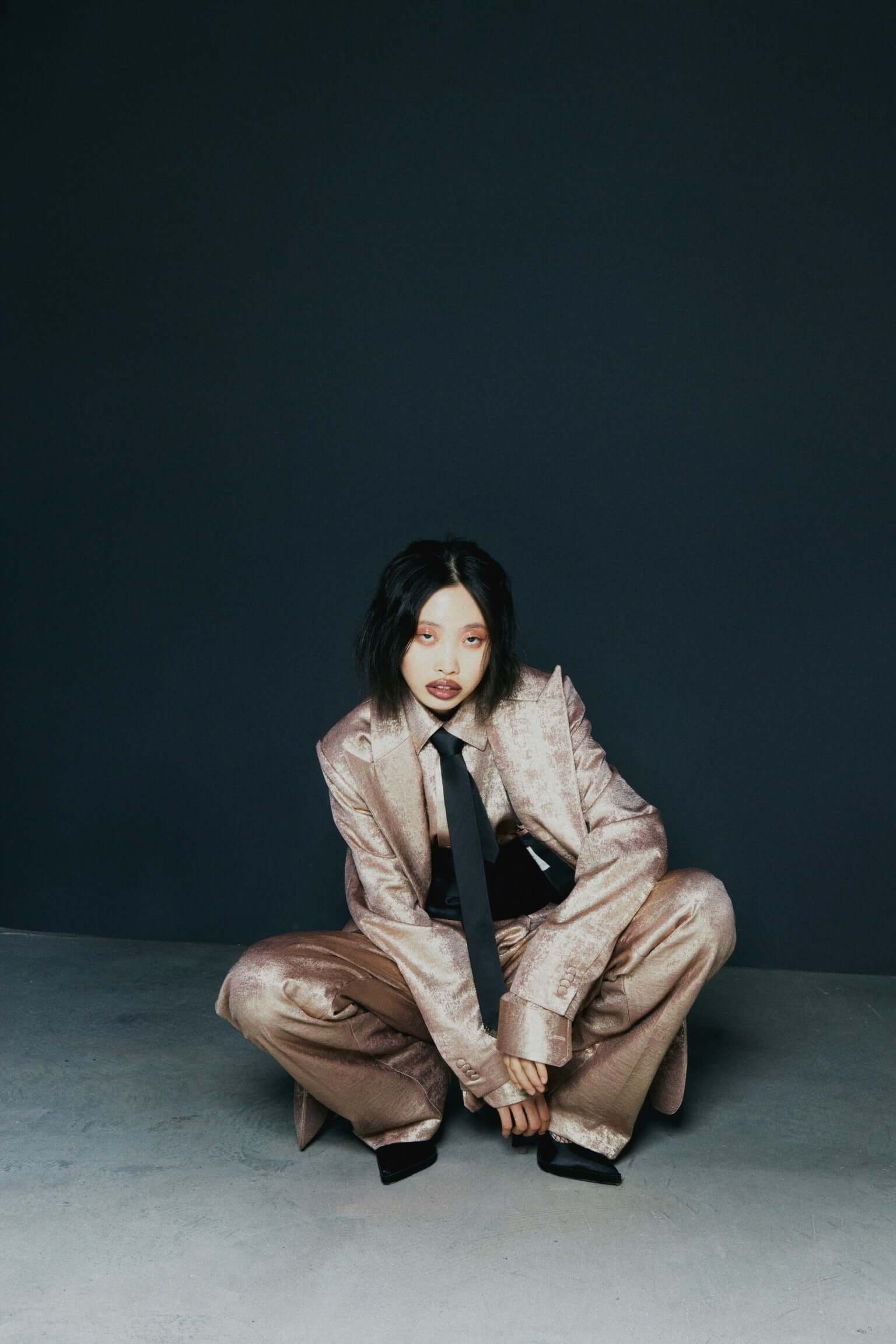Descrizione: Pantalone modello baggy in tessuto metallizzato placcato con peance ampia sul davanti, abbottonatura con gancio, dettaglio placca logo