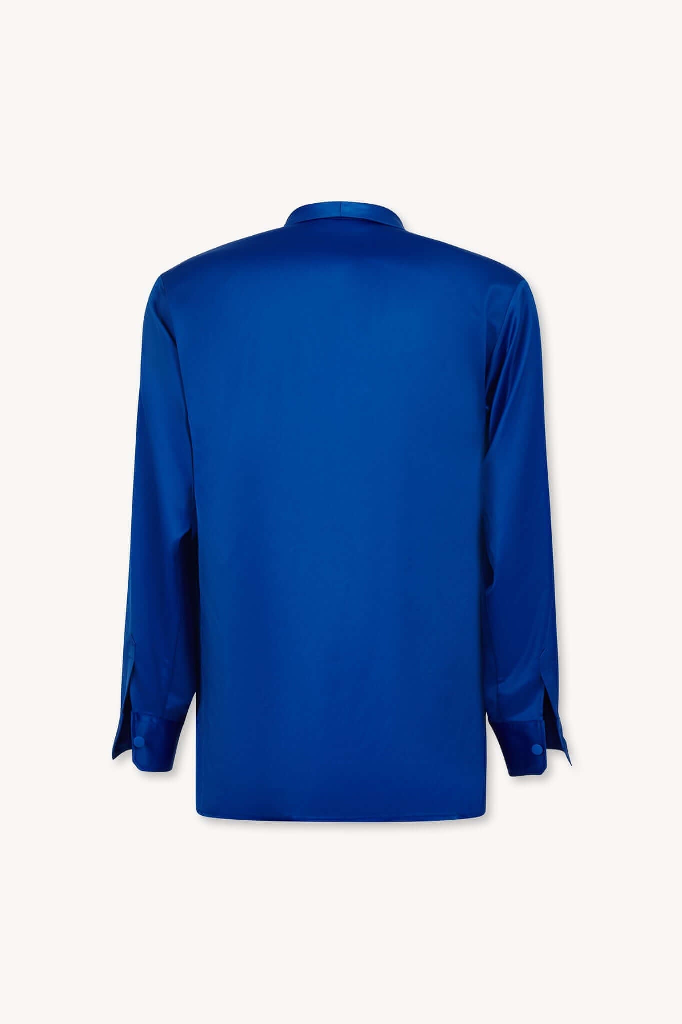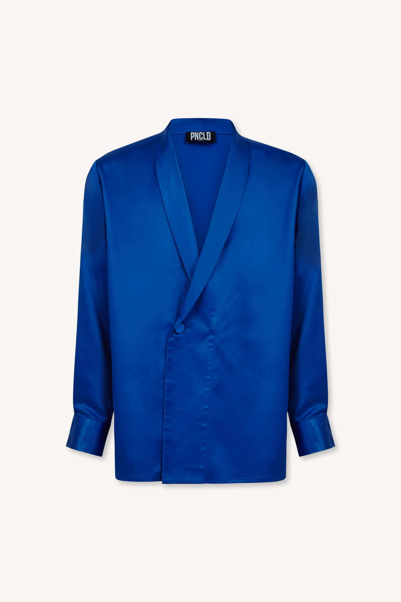 Descrizione: Camicia in raso. Dettagli collo a scialle. Abbottonatura doppiopetto