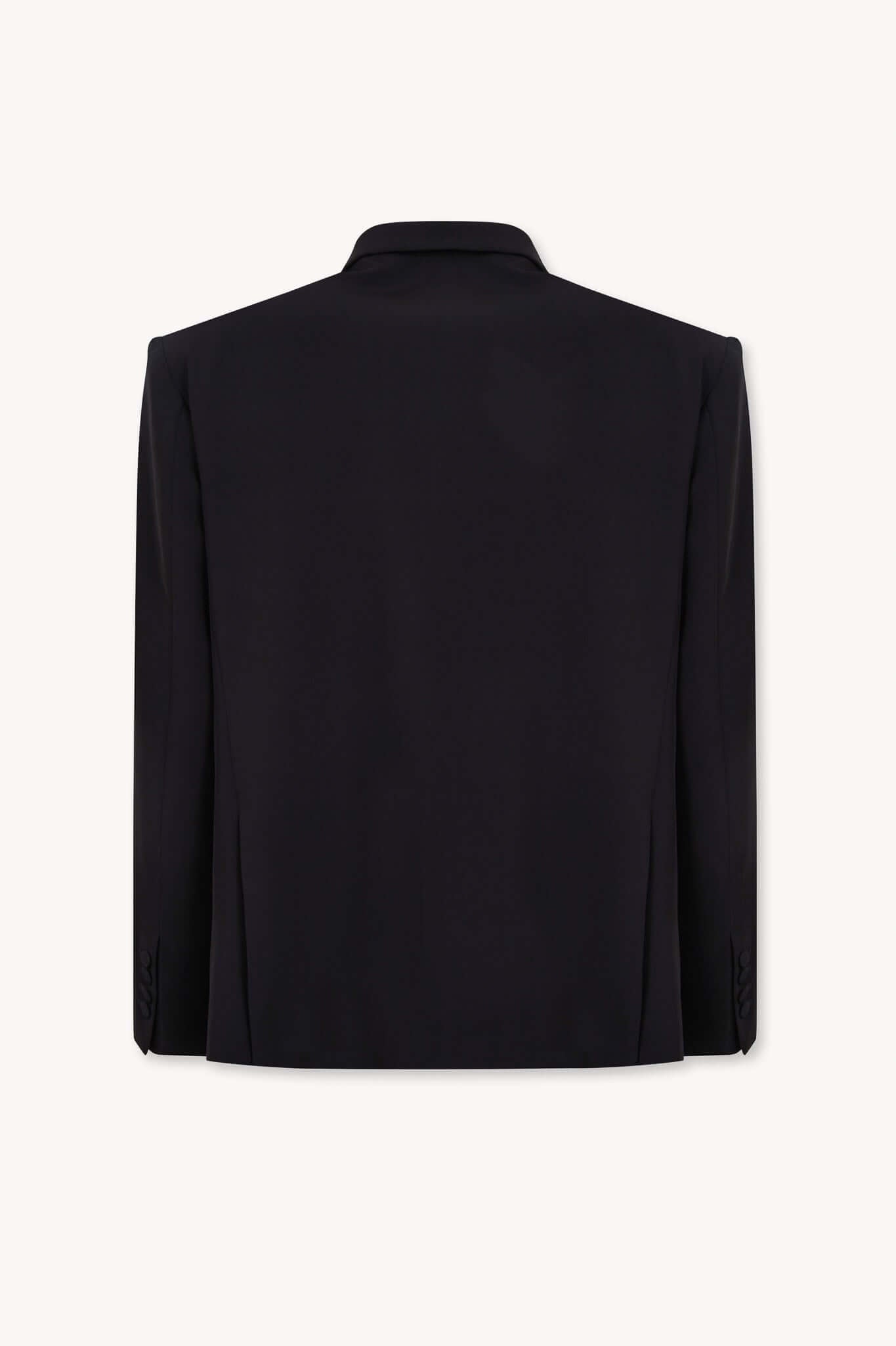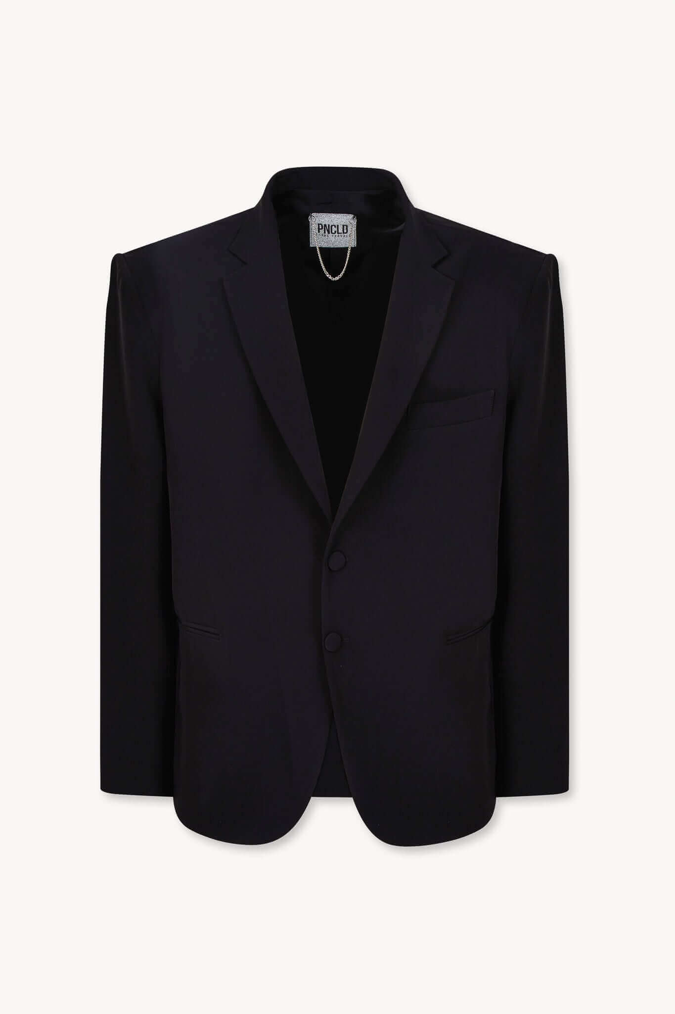 Esalta il tuo stile con la Giacca Over Nera. Realizzata in pregiato tessuto tecnico nero e tessuto morbido, è progettata per offrire una vestibilità over ed è dotata di un'abbottonatura con un solo bottone rivestito in tessuto. Per un look di classe e di stile.