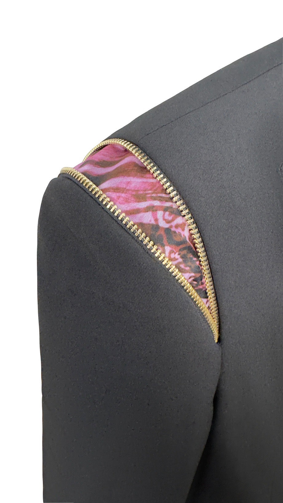 黑色生態皮革與粉紅動物紋西裝連身褲