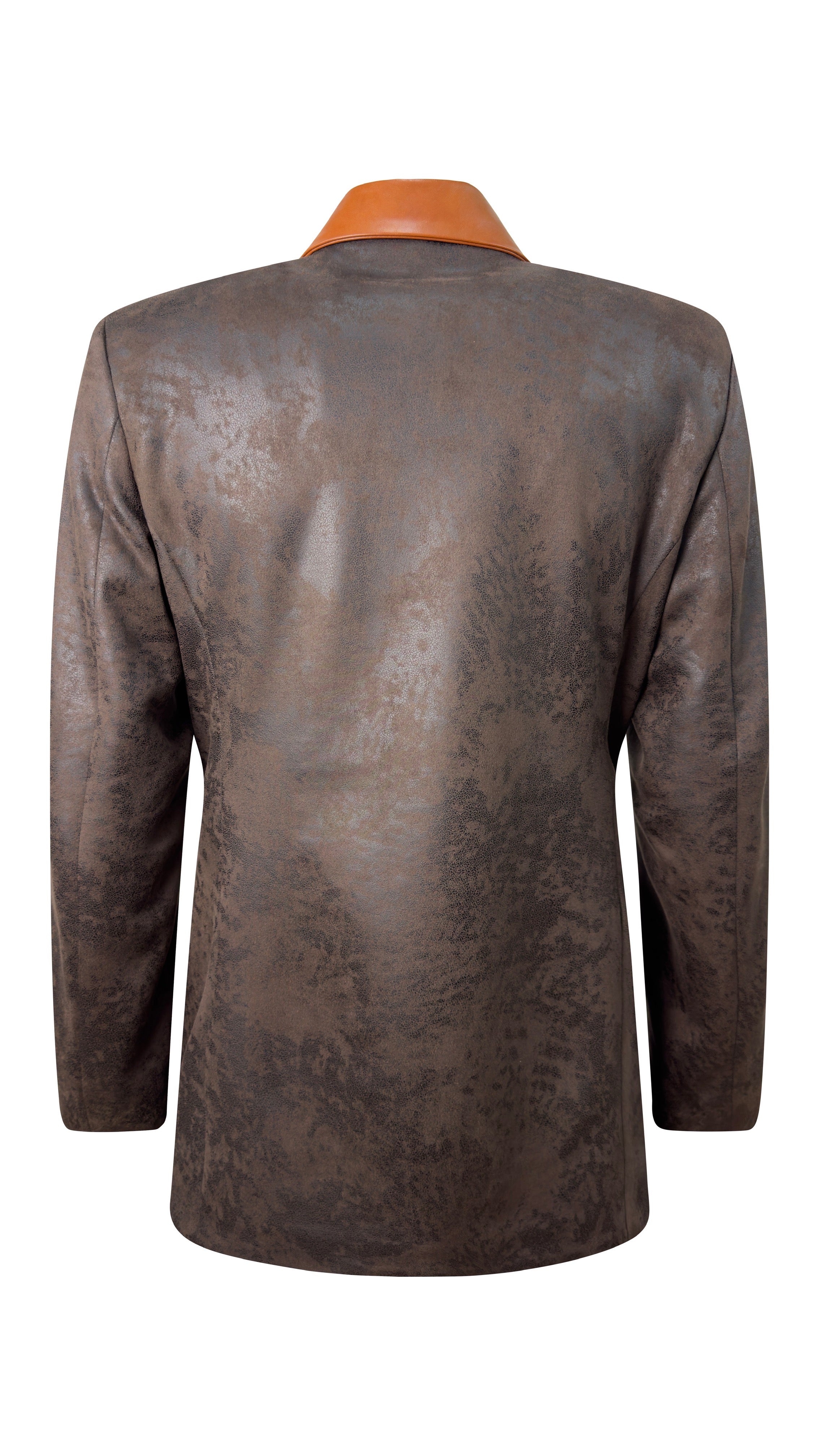 駝色單排扣仿皮夾克